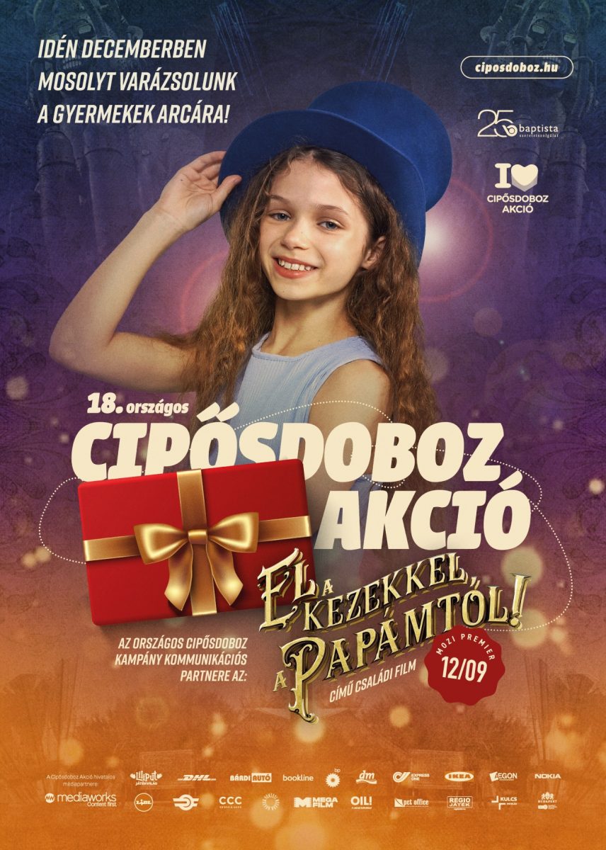 A Baptista Szeretetszolgálat idén 18. alkalommal hirdeti meg a Cipősdoboz-akciót, amelynek lényege, hogy cipősdobozba csomagolt ajándékkal tehetjük szebbé rászoruló gyerekek karácsonyát, amelyeket november 26. és december 19. között közel 350 gyűjtőponton várnak, hogy aztán még az ünnepek előtt eljuttathassák a nevelőotthonokban lakó vagy mélyszegénységben élő gyerekeknek. A szeretetszolgálat az akció www.ciposdoboz.hu weboldalán részletes útmutatást ad a cipősdoboz-ajándékok elkészítéséhez, de online cipősdobozküldésre már november 2-től nyílik lehetőség a www.liliputjatek.hu/ciposdoboz weboldalon keresztül. A Cipősdoboz-akcióban az „El a kezekkel a papámtól!” színészei mellett olyan hírességek is közreműködnek, mint Kulcsár Edina, Mező Misi, Vujity Tvrtko, Radics Gigi.