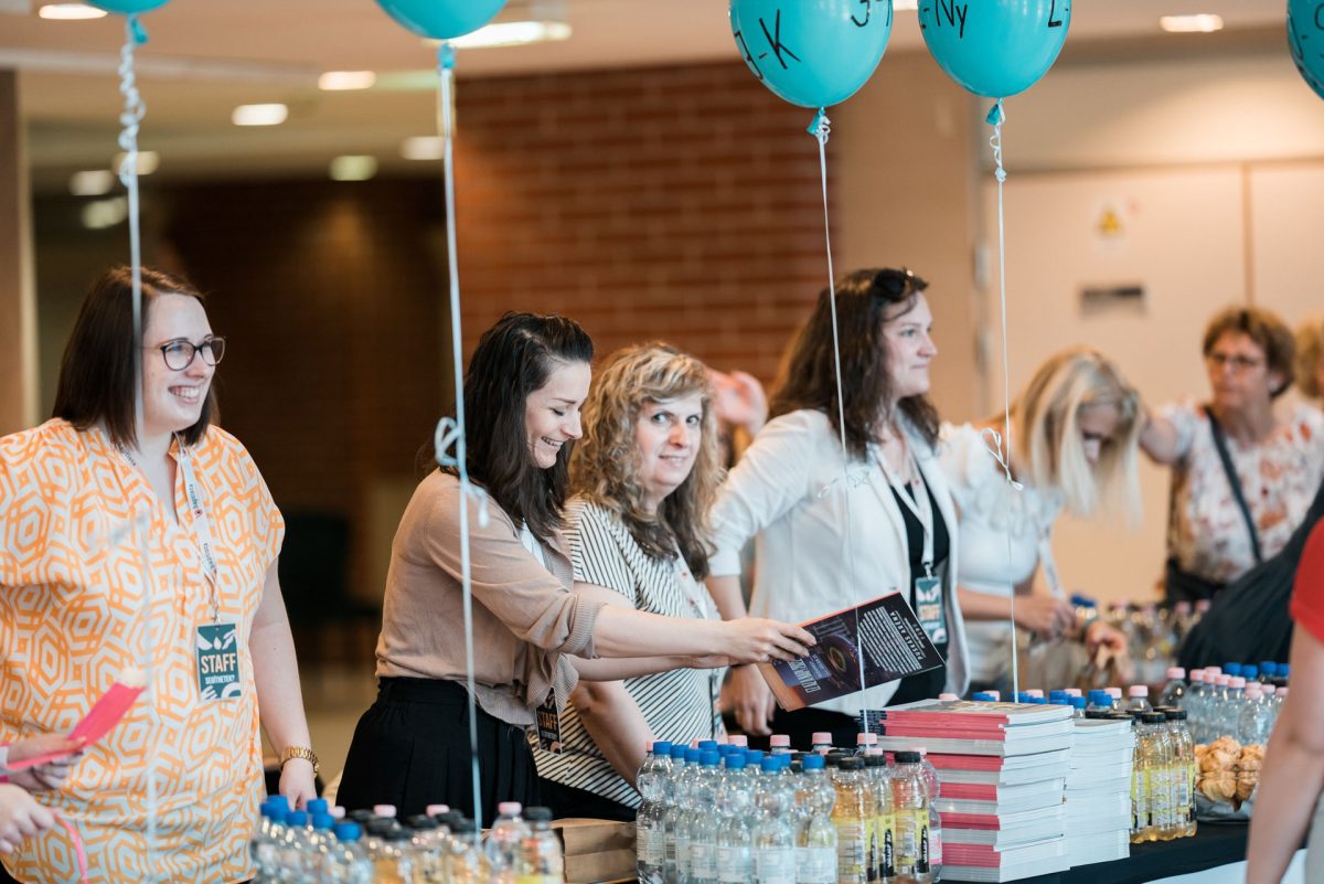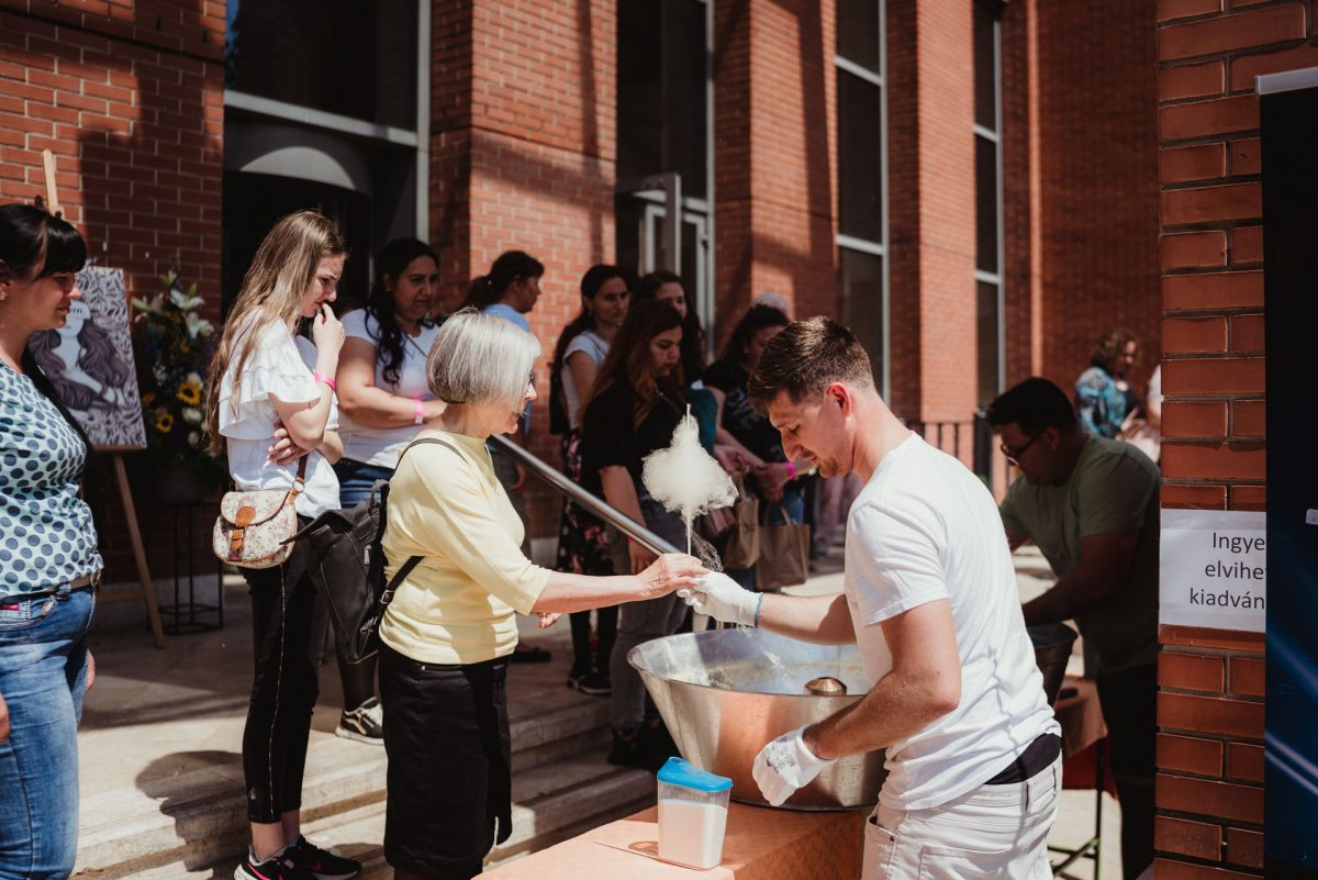 A másfél órás ebédszünet is élményekkel telt meg. Szavakkal nehéz visszaadni, milyen volt a hangulat, ahogy a nyolcszáz hölgy kiköltözött az egyetemi épület előtti rétre, ahogy a fotóbox előtt, a kávézóban vagy a vattacukrosoknál sorban állva örültek egymásnak az ismerősök, ahogy a keresztény ajándékok, pólók, könyvek kínálatában válogatva egy-egy kincsre leltek. Kedvünket még a sűrűn szálló nyárfavirágok se szegték.