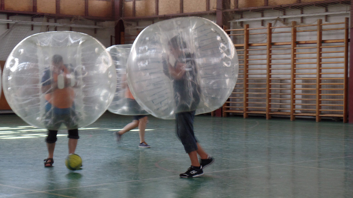 Szerdán is egy különleges alkalmunk volt. Buborékfocit játszottunk az Orchidea iskola tornatermében. Sokan kipróbálták, milyen egy felfújt műanyag gömbbe belebújva focizni. Nem is volt olyan könnyű, viszont annál viccesebb.