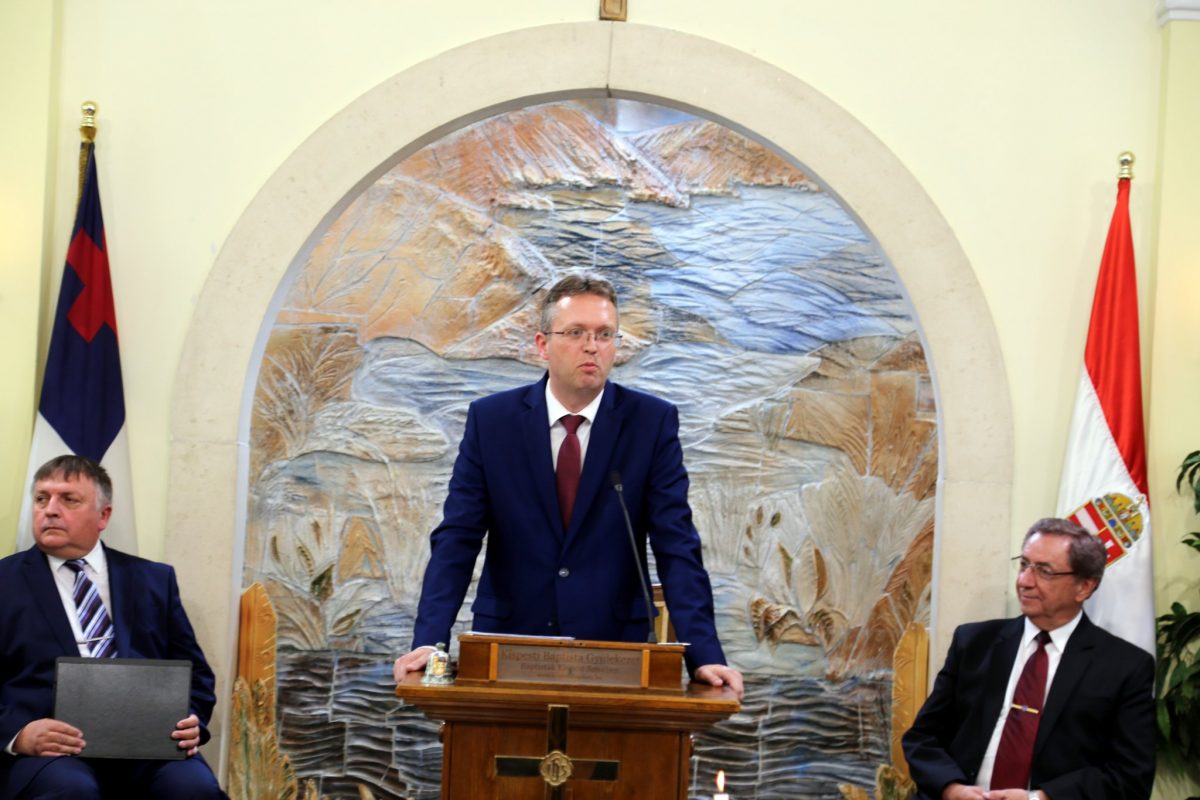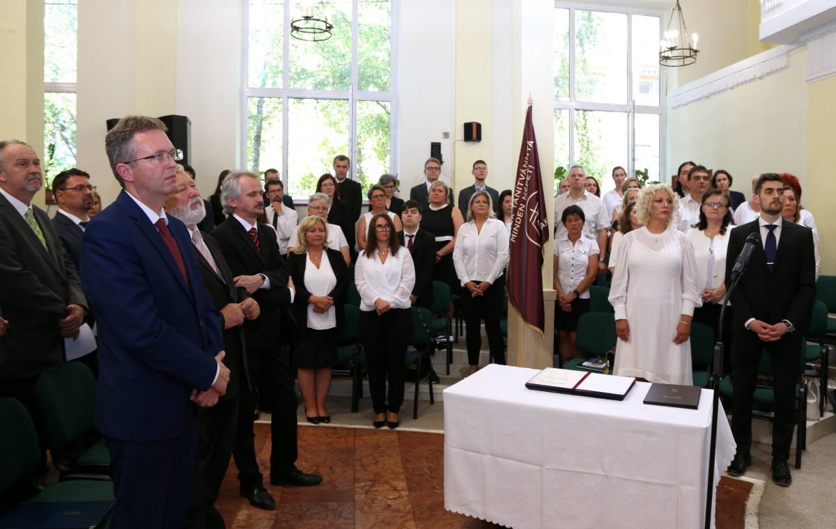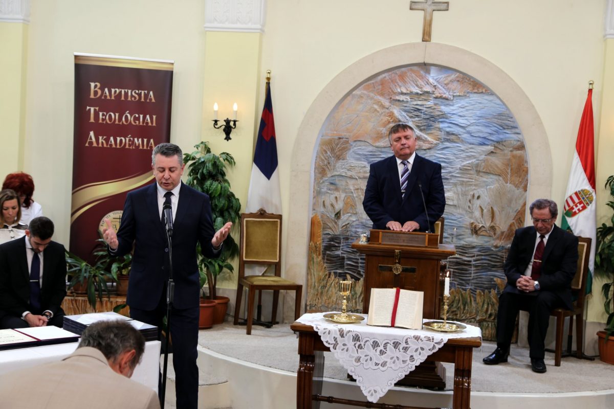 Tóth Sándor lelkipásztor imádságát követően dr. Hankó Balázs, a Kulturális és Innovációs Minisztérium felsőoktatásért felelős helyettes államtitkára köszöntötte a résztvevőket. Beszédében elmondta, milyen különösen fontos, hogy mindannyian tanítvánnyá váljunk és szolgáljuk a ránk bízott közösséget. Örömét fejezte ki, hogy az akadémia oktatási színvonala látványosan fejlődik és a képzési területe bővül.