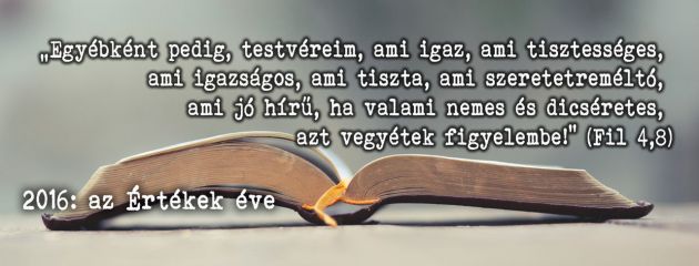 „Egyébként pedig, testvéreim, ami igaz, ami tisztességes, ami igazságos, ami tiszta, ami szeretetreméltó, ami jó hírű, ha valami nemes és dicséretes, azt vegyétek figyelembe!” (Fil 4,8)