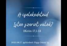 Élő közvetítés dátuma: 2023. júl. 9. BALATONSZEMESI BAPTISTA GYÜLEKEZET – Vass Zoltán lelkipásztor igehirdetése az 1Sám 17:50 igevers alapján.