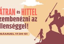 48Amikor a filiszteus nekikészült, és egyre közeledett Dávidhoz, Dávid is kifutott gyorsan a csatasorból a filiszteus elé. 49Belenyúlt Dávid a tarisznyájába, kivett belőle egy követ, a parittyájával elröpítette, és úgy homlokon találta a filiszteust, hogy a kő belefúródott a homlokába, és arccal a földre zuhant. 50Dávid tehát erősebb volt a filiszteusnál, bár csak parittyája és köve volt: legyőzte a filiszteust, és megölte, pedig még kard sem volt Dávidnál. 51Azután odafutott Dávid, rálépett a filiszteusra, fogta annak a kardját, kihúzta a hüvelyéből, megölte vele, és levágta a fejét. Amikor látták a filiszteusok, hogy meghalt a vitézük, megfutamodtak.” (1Sám. 17:41-51)