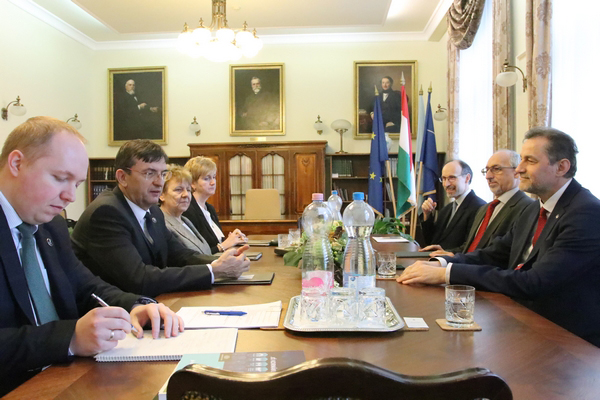 Domokos László, az Állami Számvevőszék elnöke, Makkai Mária és Marozsán Lászlóné felügyeleti vezetők, valamint Pálmai Gergely osztályvezető fogadta a számvevőszék székházában 2020. február 28-án a Magyarországi Baptista Egyház vezetőit: Papp János egyházelnököt, Mészáros Kornél főtitkárt, Simon Norbert gazdasági igazgatót és Háló Gyula kommunikációs igazgatót.