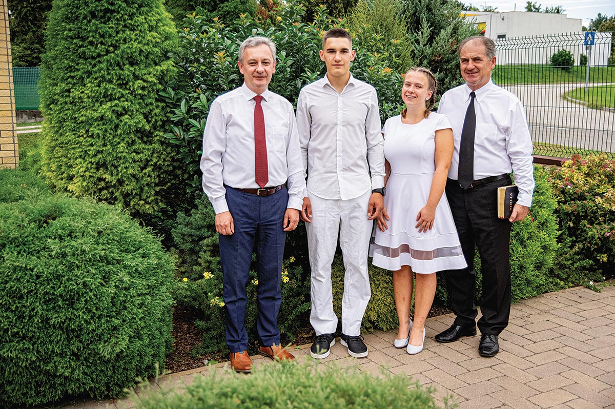 Fazekas Lajos és Bollog János gyülekezetvezetők Bibliával és igei jókívánságokkal köszöntötték az új testvéreket.