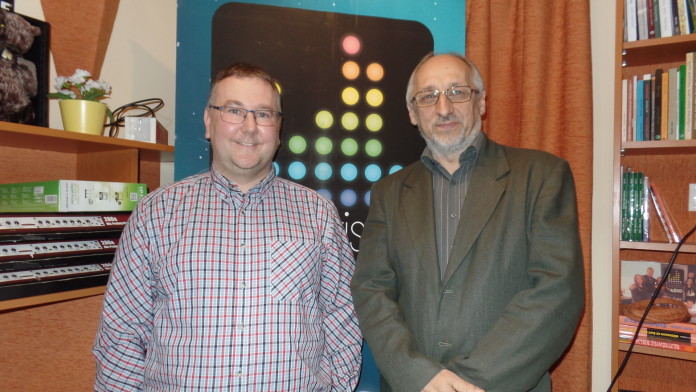 Merényi Zoltán műsorvezető Mészáros Kornél főtitkárral beszélget a Baptista Rádió Mozaik című műsorában 2016. március 28-án, húsvét hétfőn.