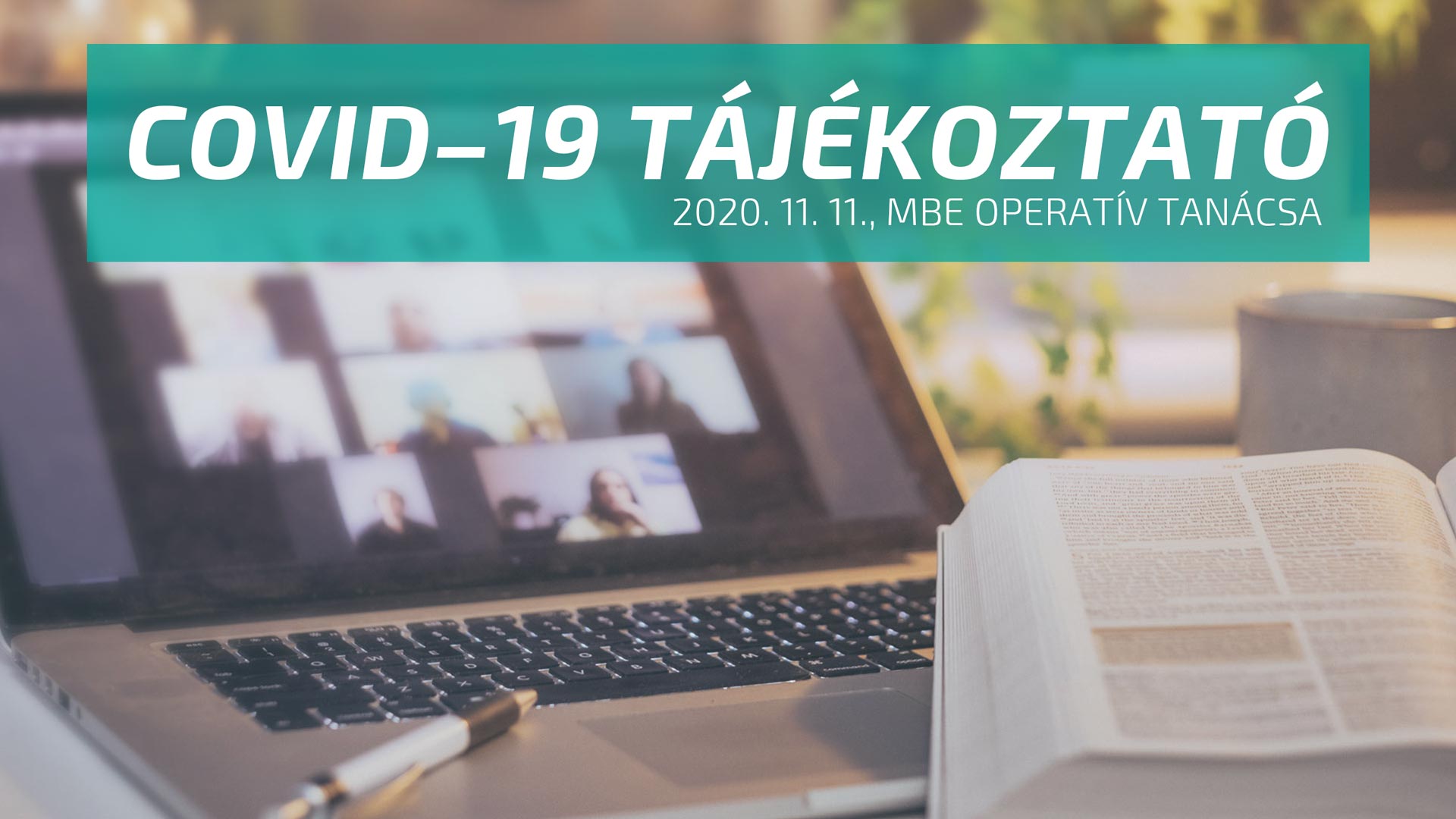 1. 2020. november 11-től kezdődően a gyülekezeti istentiszteletek, bibliaórák tekintetében kérjük a gyülekezeteket, hogy mindenütt álljanak át ONLINE módra a tavaszi veszélyhelyzeti időszakhoz hasonlóan, figyelembe véve az MBE operatív tanácsának ajánlott szempontrendszerét (www.baptist.hu/koronavirus).