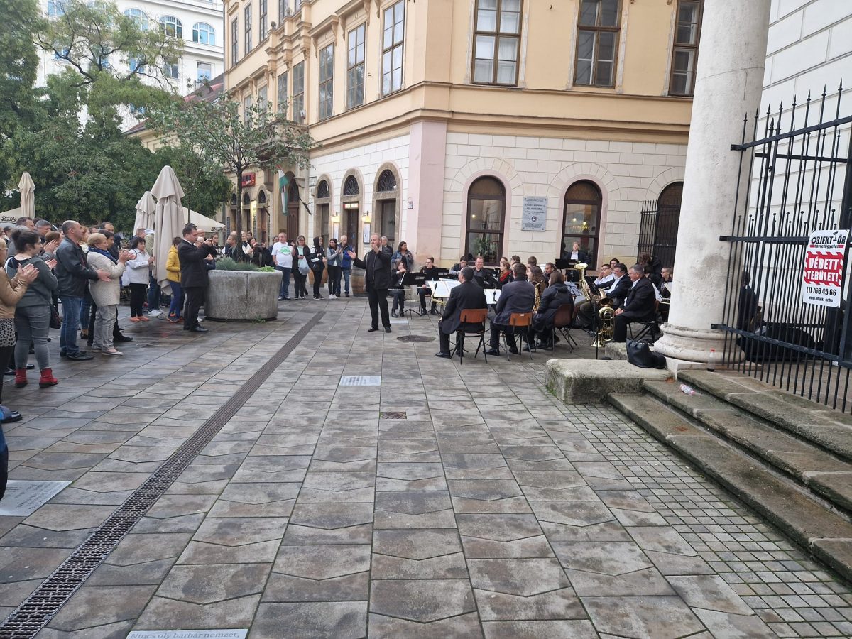 Az ünnepi istentisztelet előtt szabadtéri koncertet adott a templom előtti téren az Egressy Béni Református Művészeti Szakgimnázium Fúvószenekara.