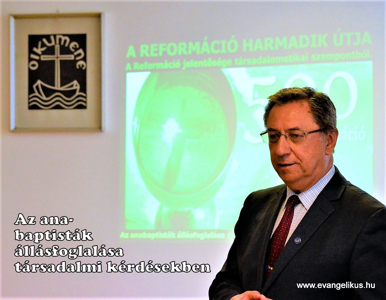 A reformáció jelentősége társadalometikai szempontból címmel Mészáros Kálmán tartott előadást. A Baptista Teológiai Akadémia tanszékvezető docense a reformáció előzményeit bemutatva arra hívta fel a figyelmet, hogy az egyháztörténelem egyes korszakaiban nyomon követhető, hogy az egyházi torzulást többször is igyekeztek korrigálni. Ezt egészen Nagy Konstantintól a keleti és nyugati egyházszakadáson át a huszita mozgalmon keresztül a lutheri reformációig mutatta be vázlatosan az előadó. „Luther idején egész Európa nyugtalan volt” – mondta a történész. Majd arról beszélt, hogy „a reformáció eszméi Európában nem úgynevezett nemzeti ébredés útján terjedtek el, hanem az „akié a föld, azé a vallás” törvény alapján, az uralkodó, a király, a fejedelem, a földesúr határozta meg az ország, a régiók felekezeti hovatartozását”. Kitért a reformáció népi irányzatára is, valamint ismertette, hogy az anabaptisták ellen milyen kegyetlen üldözést hajtott végre a keresztény Európa.