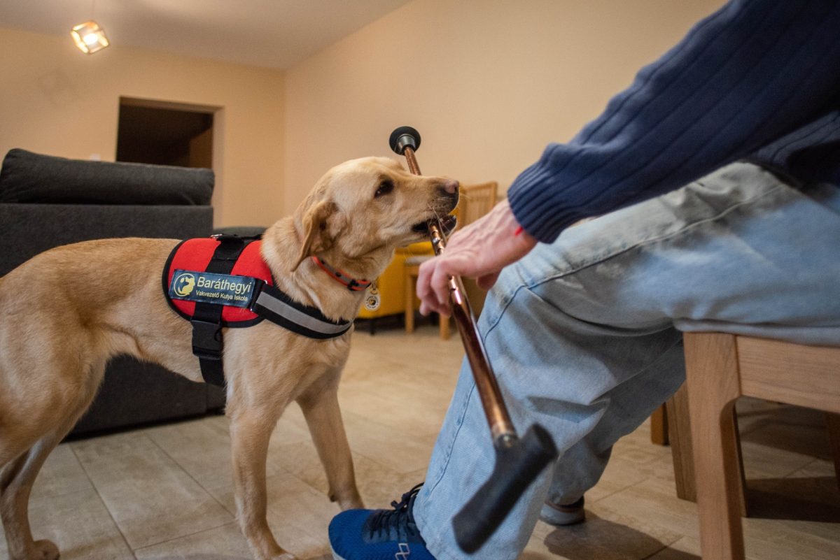 „A személyi segítő és a vakvezető kutyákat azért képzi ki az alapítvány akár a mozgáskorlátozottaknak, akár a látássérülteknek, hogy a mi életminőségünkön javítson. Ebben rengeteg munka és időbefektetés van. Lényeges, hogy mindenki olyan kutyát kap, ami az igényeinek és a személyiségének megfelelő. Az pedig külön érdem, hogy nekünk nem kell fizetnünk értük” – mondta László, aki egy budapesti cégnek egyeztet telefonon üzleti megbeszéléseket, de egy ilyen speciális tudású kutya árát egyáltalán nem tudná kigazdálkodni. Elmondta, hogy Frappé sokat segít abban, hogy új ismerősökre tegyen szert, és ha van alkalma, elmondja, milyen fontos a Baráthegyi Vakvezető és Segítő Kutya Iskola Alapítványnak az adó 1%-felajánlás.
