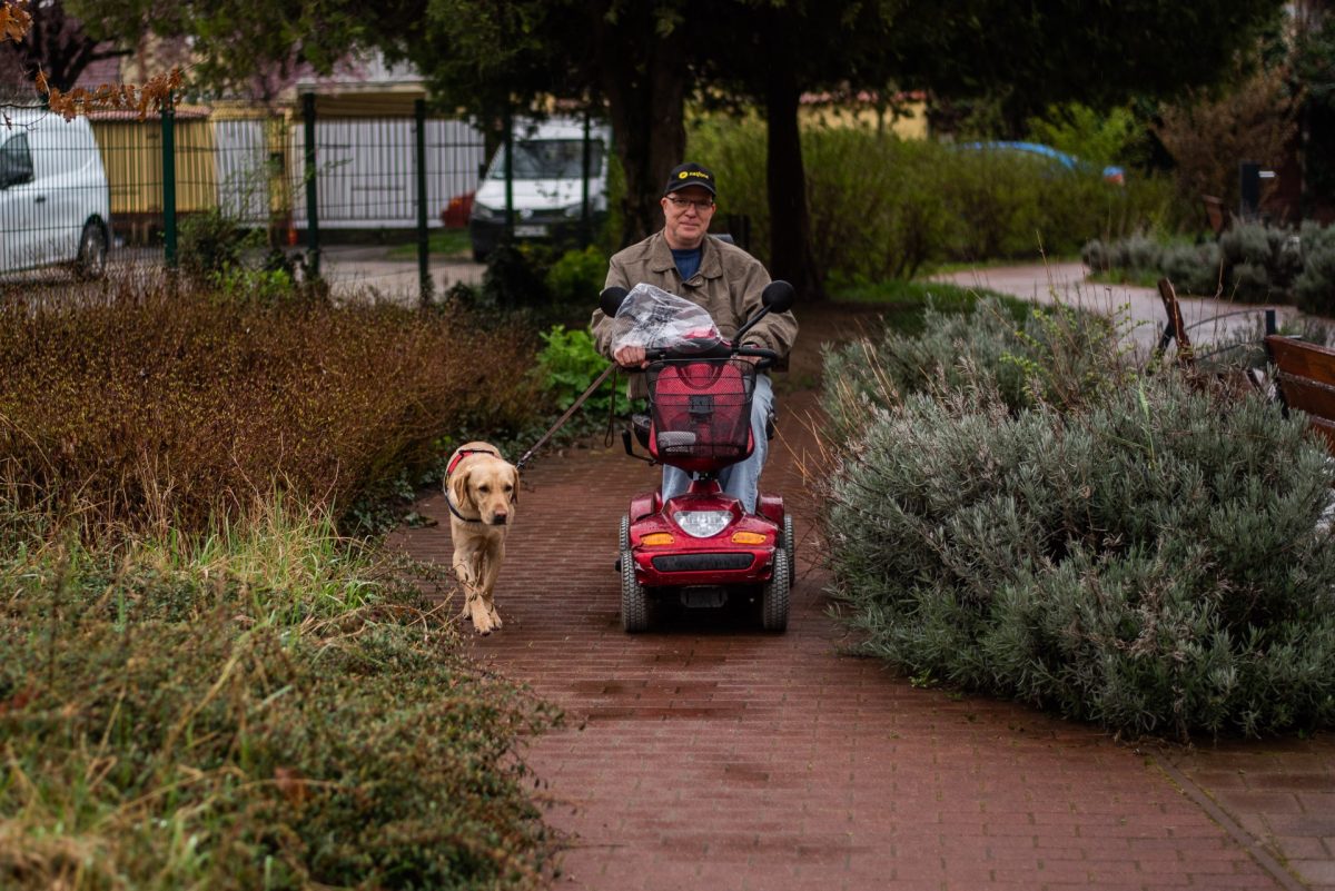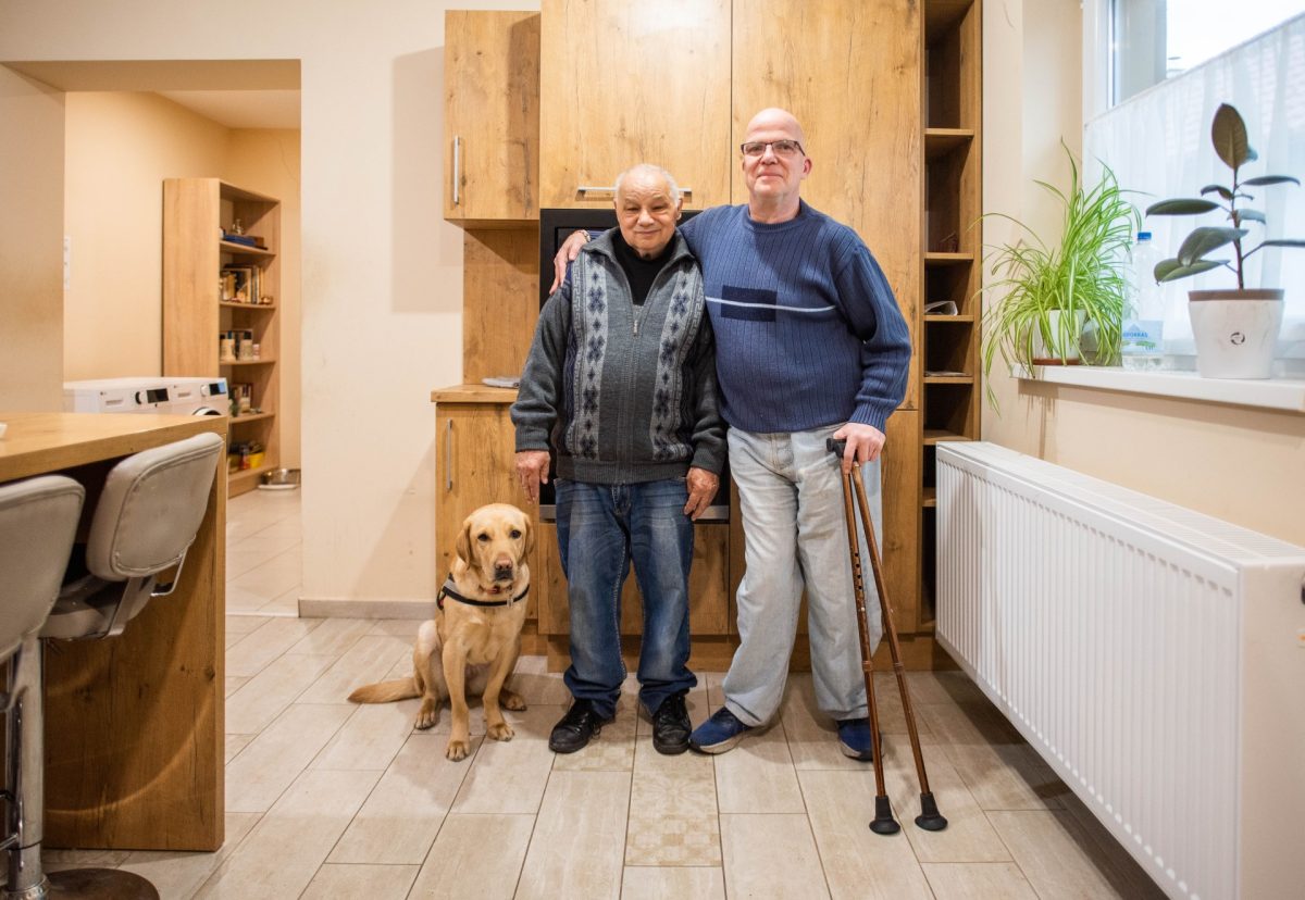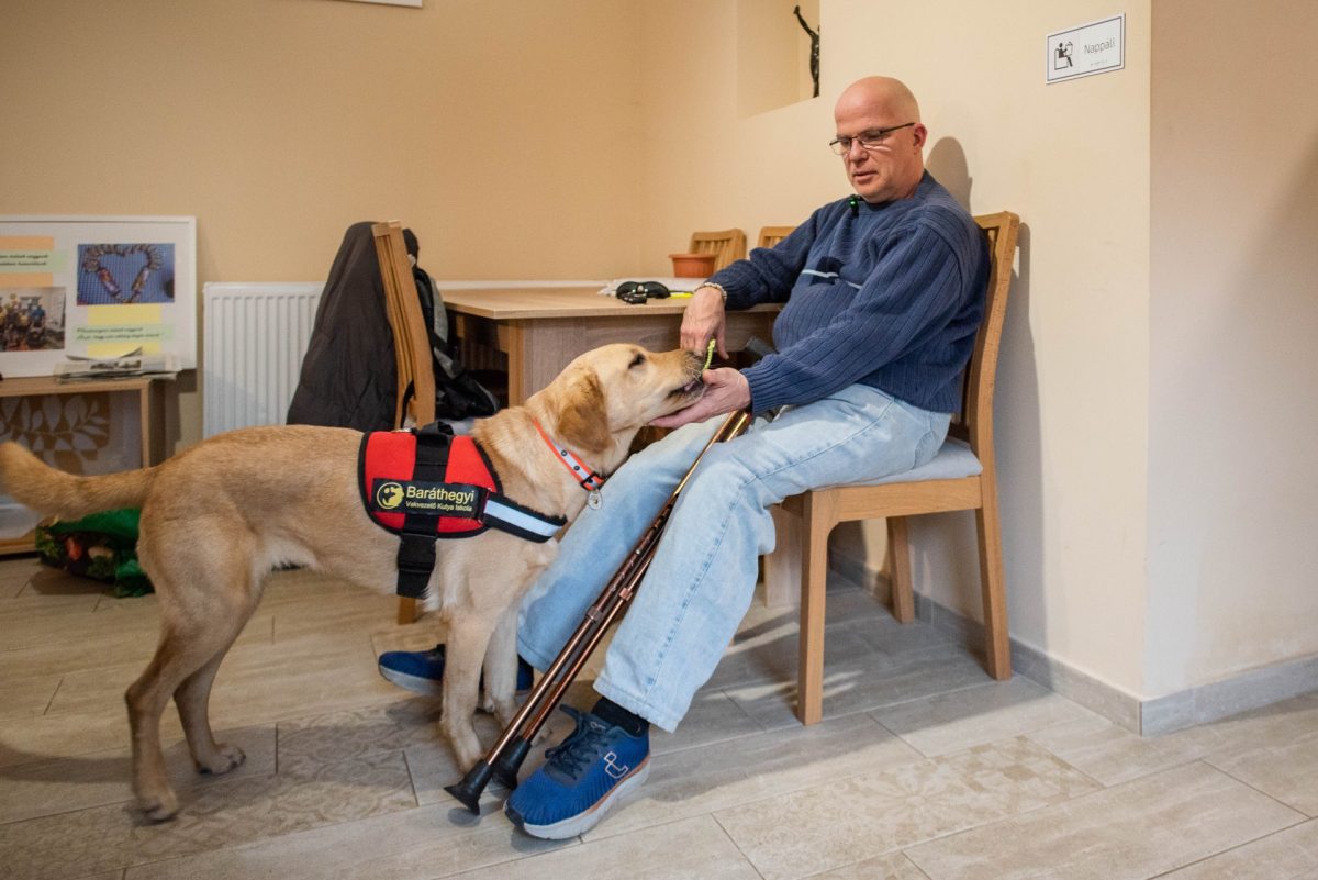 Göncző Lászlónak és Frappénak a Baptista Tevékeny Szeretet Misszió ad otthont Hajdúböszörményben. A személyi segítőkutyát a Baráthegyi Vakvezető és Segítő Kutya Iskola Alapítvány képezte. A páros barátságban osztozik lakótársaival a tágas ház közösségi terein, László elégedett azzal, hogy mindenkinek van saját szobája, ahol nyugodtan pihenhet, kikapcsolódhat. Ottjártunkkor találkoztunk a kerekesszékkel közlekedő Lászlóval és a rangidős Józseffel. Az aktív nyugdíjast Papinak becézi, mert olyan Lászlónak, mint egy jóságos apa, igyekszik mindenben a keze alá dolgozni a középkorú mozgáskorlátozott társaknak. Az otthon lakói önállóan látják el a feladatokat a házon belül, ez a szeretetmisszió egyik fontos kérése. A szoros együttműködés eredménye, hogy rendezetten és jó hangulatban telnek a napjaik. Úgy láttuk, ez hatással van arra, hogy az egész életüket igyekeznek egyben tartani.