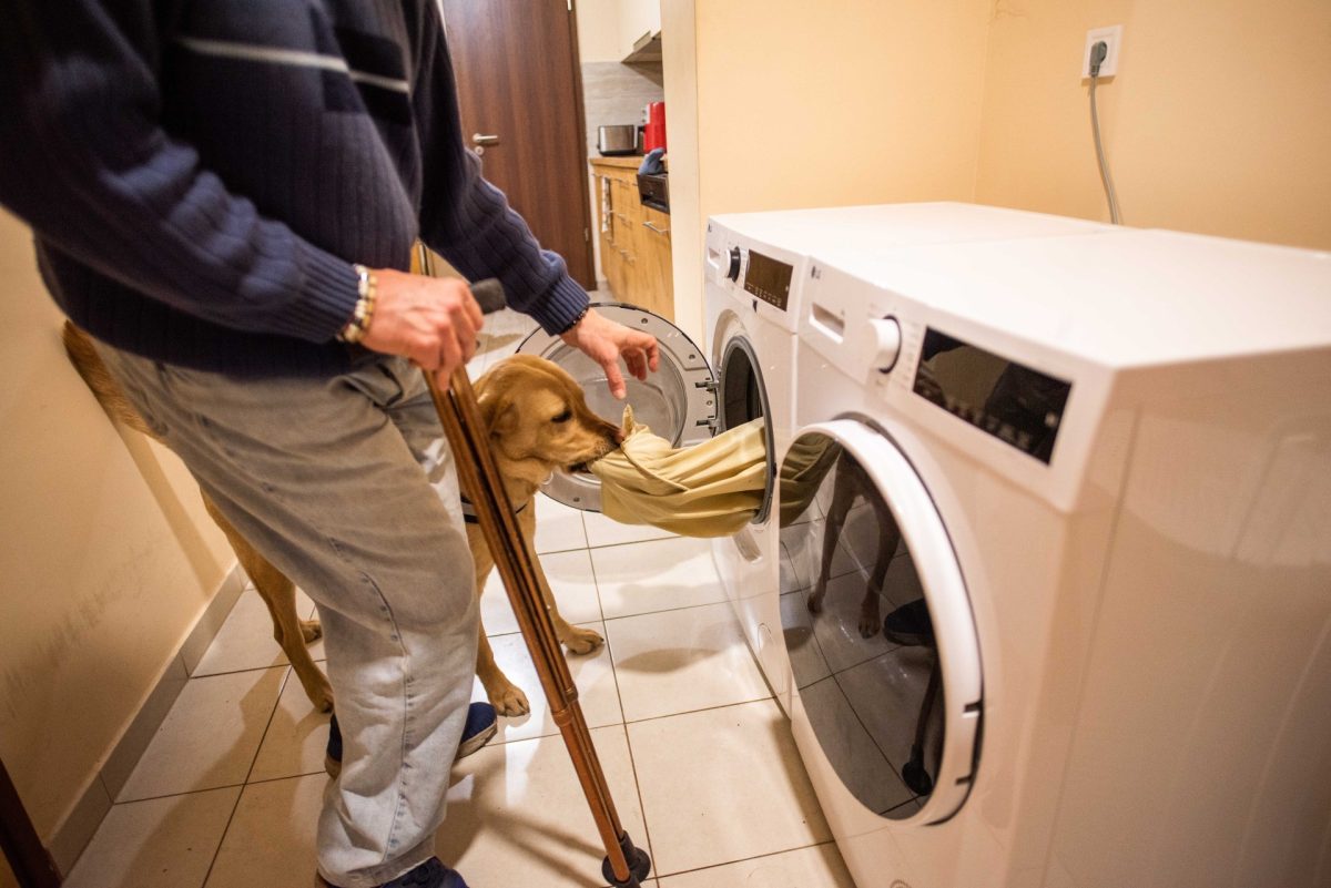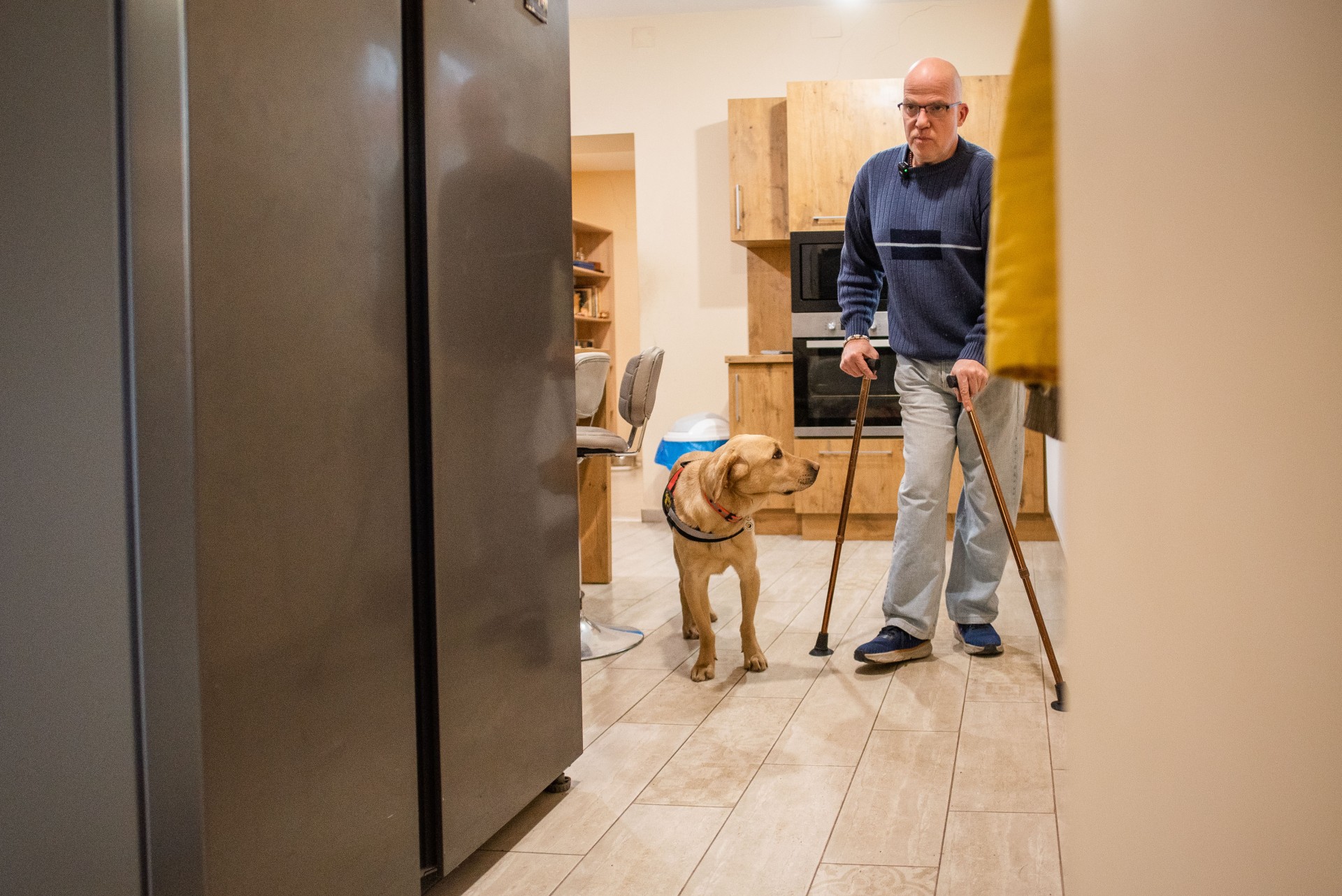 László helyzetét könnyebbé teszi, hogy van egy négylábú szövetségese is. Elmondta nekünk, hogy személyi segítőkutyája sokoldalú társ, még a mosást is könnyebbé teszi, mert kiveszi a nedves ruhát a gépből, és a kezébe adja. László két bottal jár, lassan és óvatosan, mivel a lábai erre teszik képessé, másrészt minden egyes lépésére oda kell figyelnie. Félő kockáztatnia egy elesést, ugyanis a földről nem tud felállni segítség nélkül. Frappé erre a helyzetre is fel van készítve, vagy megy mástól segítséget kérni, vagy egy kötéllel felszerelt széket odahúz házon belül, amire a gazdája rá tud kapaszkodni. Szerencsére eddig erre nem volt szükség. László elmondta, hogy amíg csak el tudja kerülni, nem szeretne kerekesszékbe ülni.