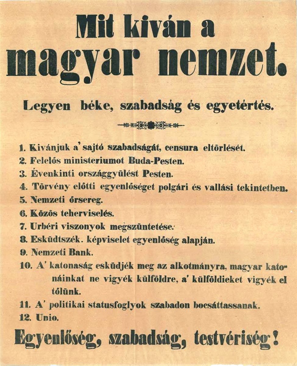 A márciusi ifjak – akár tudták, akár nem – 12 pontjának bevezető mondata társadalomfilozófiai tétel, sőt szellemfilozófiai gondolat, ezért a három kívánalom sorrendje megváltoztathatatlan. Miért? Mert valóságos, erős és tartós szabadság csak békét hordozó emberekből születik. A szabadságot nem lehet társadalmi lombikban előállítani. Hiába alkotjuk meg a legnagyszerűbb és legbiztosabbnak tűnő kereteit és szabályait a szabadságnak, hiába fogalmazzuk meg a legkívánatosabbnak tűnő békeszerződéseket, azok nem hívják őt életre.