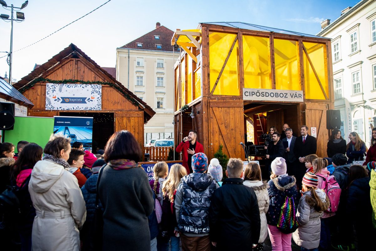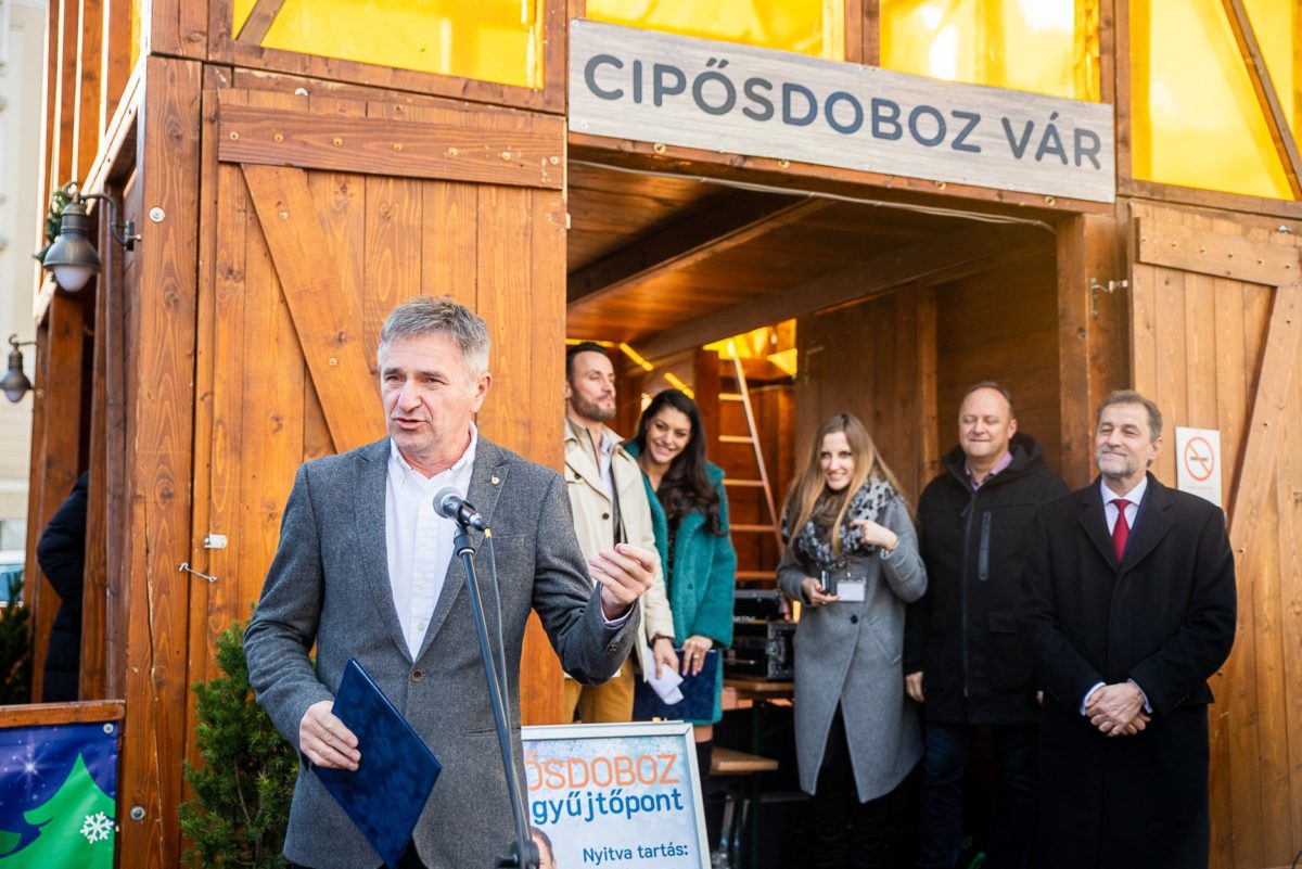 Hári Tibor, a szeretetszolgálat ügyvezető főigazgatója kiemelte: a Baptista Szeretetszolgálat az adventi időszakban immár 16. alkalommal szervezi meg az egyre többeket maga mögé állító Cipősdoboz-akcióját, amelynek keretében december 19-ig várják a gyerekeknek szánt, ajándékokkal megtöltött dobozokat. Hozzátette, hogy aki nem tud ajándékot készíteni, az a 1355-ös telefonszámon hívásonként 300 forinttal tud támogatást nyújtani. Az ügyvezető igazgató felidézte, hogy 2004-ben indították útjára a jótékonysági akciót, abban az évben még csak néhány ezer darab cipősdoboz gyűlt össze. Tavaly már ez a szám 57 ezerre emelkedett, idén szeretnék átlépni a hatvanezres határt – emelte ki. Idén 340 gyűjtőponton várják az adományokat országszerte, de online is lehetőség van cipősdobozt felajánlani, vásárolni. A Deák téri ponton leadott dobozokat nyomkövetővel is ellátják, így az ajándékozó a feladástól egészen a célba érkezésig végigkövetheti a doboz útját. Kiemelte, hogy ebben az évben is meghirdetik a legkreatívabb cipősdoboz versenyt, amelynek részleteiről a ciposdoboz.hu oldalon és az esemény Facebook-oldalán tájékozódhatnak az érdeklődők.