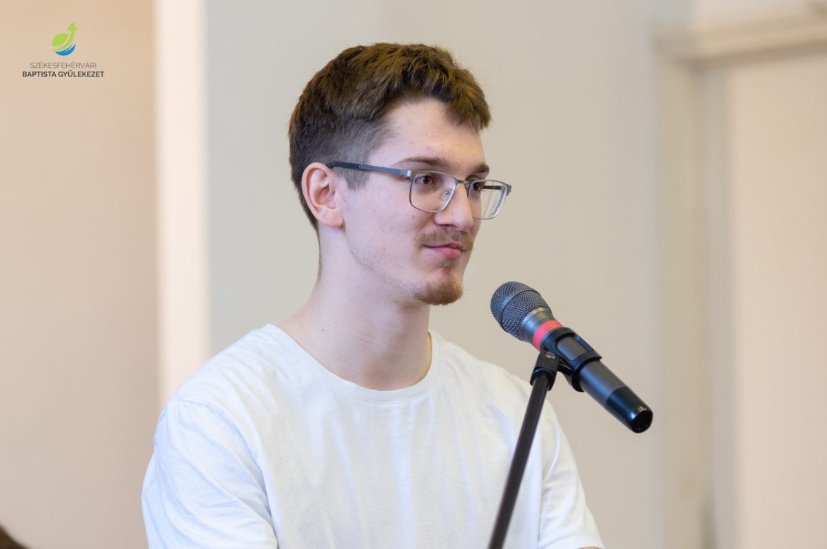 Végezetül Hári Ábel bizonyságát hallgattuk meg. Ábel a gyülekezetben nőtt fel, voltak az életében vidám és nehéz időszakok is. Az egyik vépi gyermektáborban tért meg, de kamaszként szerette volna megtapasztalni milyen a világi élet. Majd megértette, hogy valójában kell egy fix pont az életében, amibe kapaszkodni tud, és ezt Jézusban találta meg. Már nem csak kimondani szeretné, hogy keresztény, hanem megpecsételni ezt a szövetséget az Úrral. Véglegesen átadta életét Krisztusnak, mert Őt akarja követni, mint Megváltót.