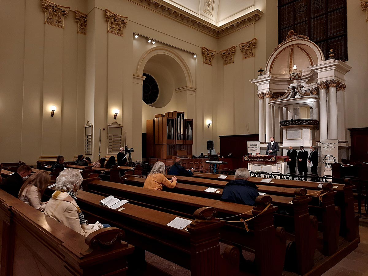 Október elsején ünnepi fényben várta a testvéreket a Kálvin téri református templom. Az aranyozott kupola fényesen zengte vissza a kórusok énekét és az orgona hangját. A koronavírus-járvány miatt a korábbi években tapasztalt nagy létszámú gyülekezet most óvatosabb volt, így az előírásoknak megfelelően minden második padsorban ülhettek csak a különböző felekezetekből érkező testvérek.