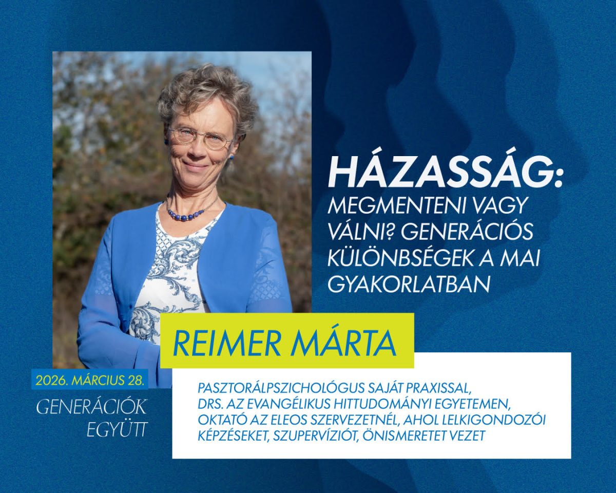 Generációk együtt mottóval megrendezett konferencia a médiahasználattól és az evangelizációtól kezdve az identitásformáláson, párkapcsolati és egészségügyi kérdéseken át egészen a vezetői és munkahelyi kihívásokig vizsgálja a generációk közötti kapcsolódás lehetőségeit. Előadások és kerekasztal-beszélgetések segítenek megérteni, hol feszülnek ma a törésvonalak, és hogyan válhatnak ezek valódi találkozási pontokká az egyházban és a társadalomban.