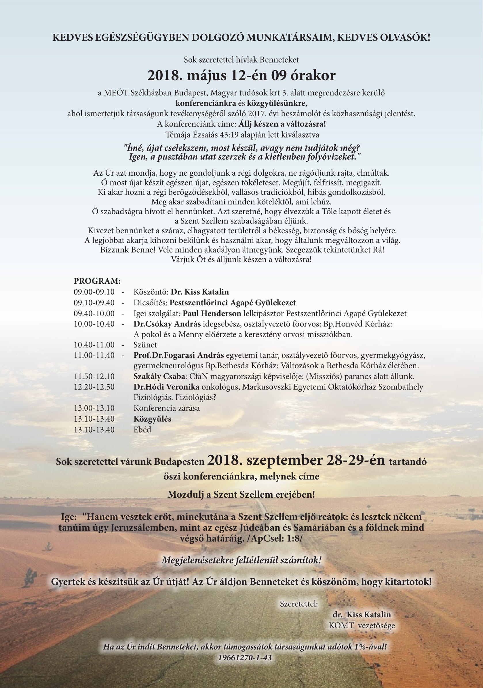 Tisztelettel hívunk benneteket 2018. május 12-én a 9.00–13.10-ig megrendezésre kerülő szakmai konferenciánkra és társaságunk közgyűlésére.