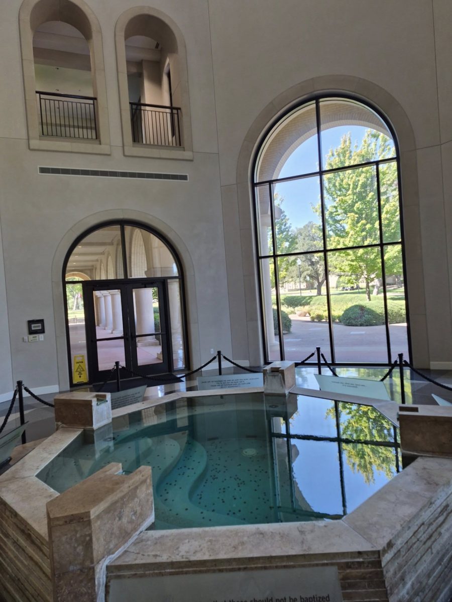 Az egyetemi város középpontjában egy több száz ülőhelyes kápolna uralja a teret. A templom előcsarnokában egy nyolcszögletű, felnőtt hitvallók bemerítésére alkalmas baptisztérium fogadja a templomtérbe belépő látogatót. A tiszta forrásból csörgedező kristálytiszta vizet tartalmazó márványmedence oldalfalain a megtérésre, újjászületésre, megszentelt életre felszólító bibliaversek olvashatók.