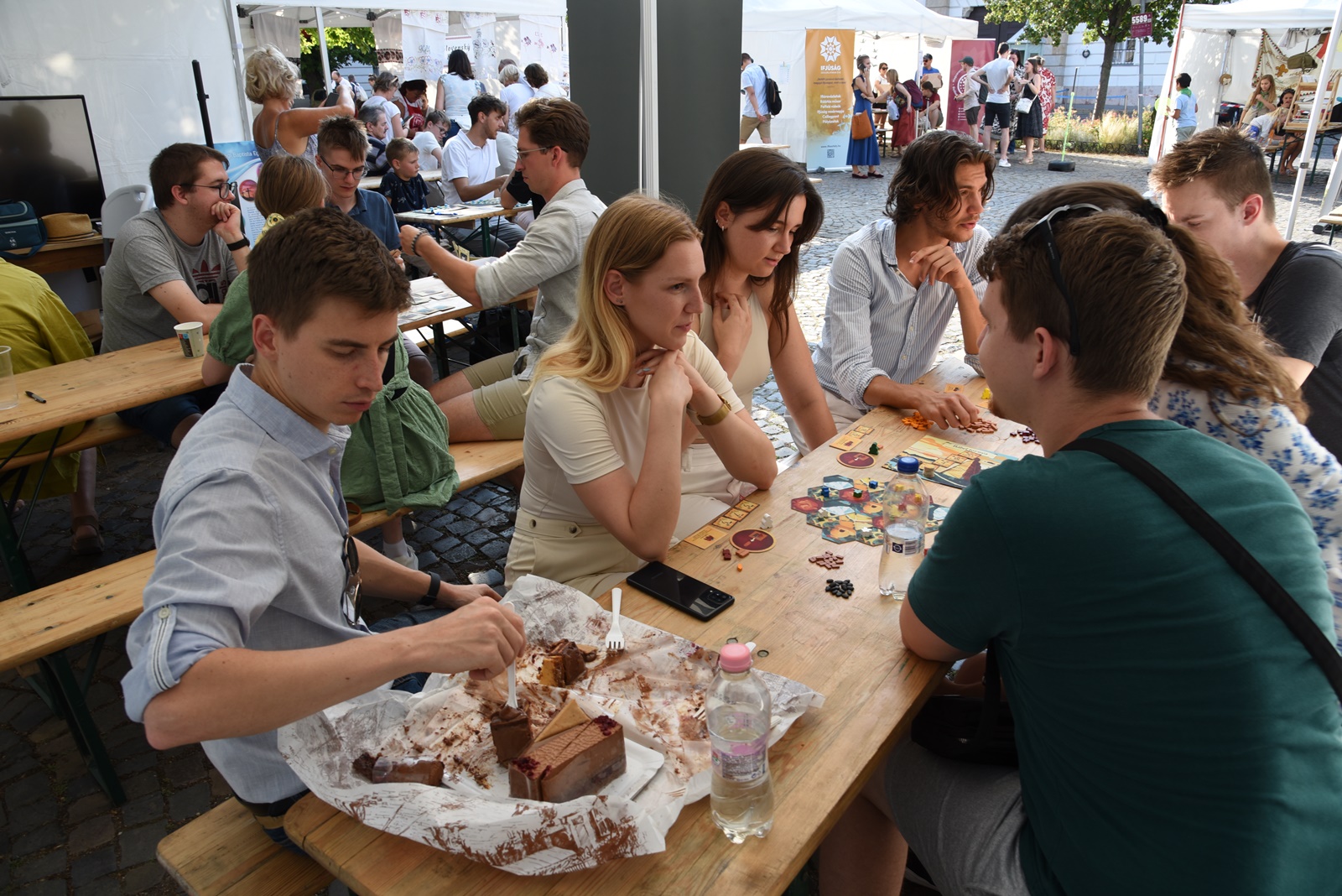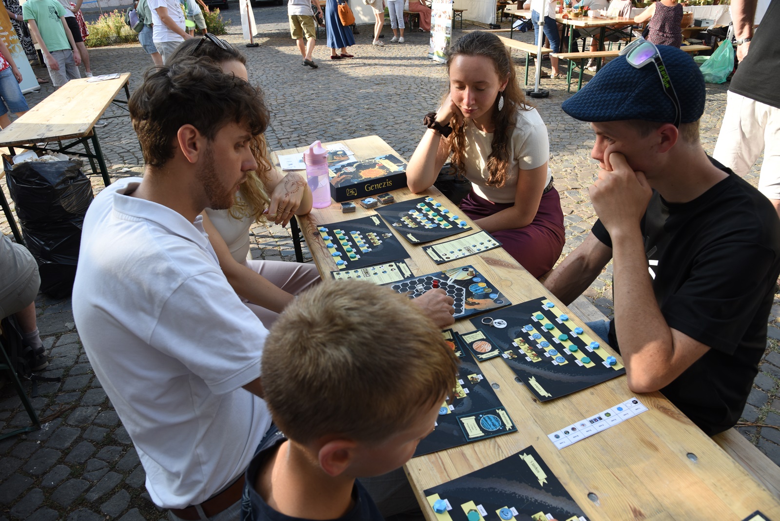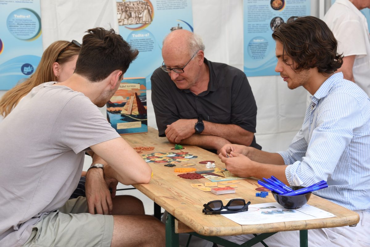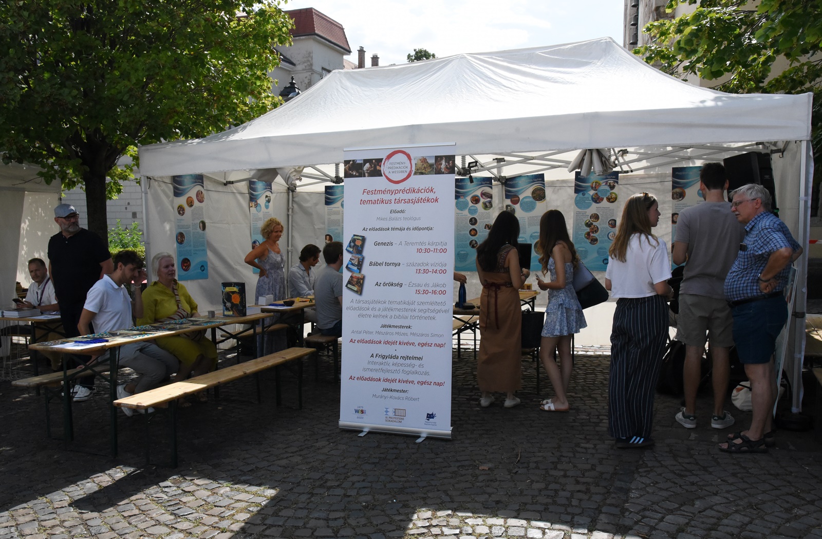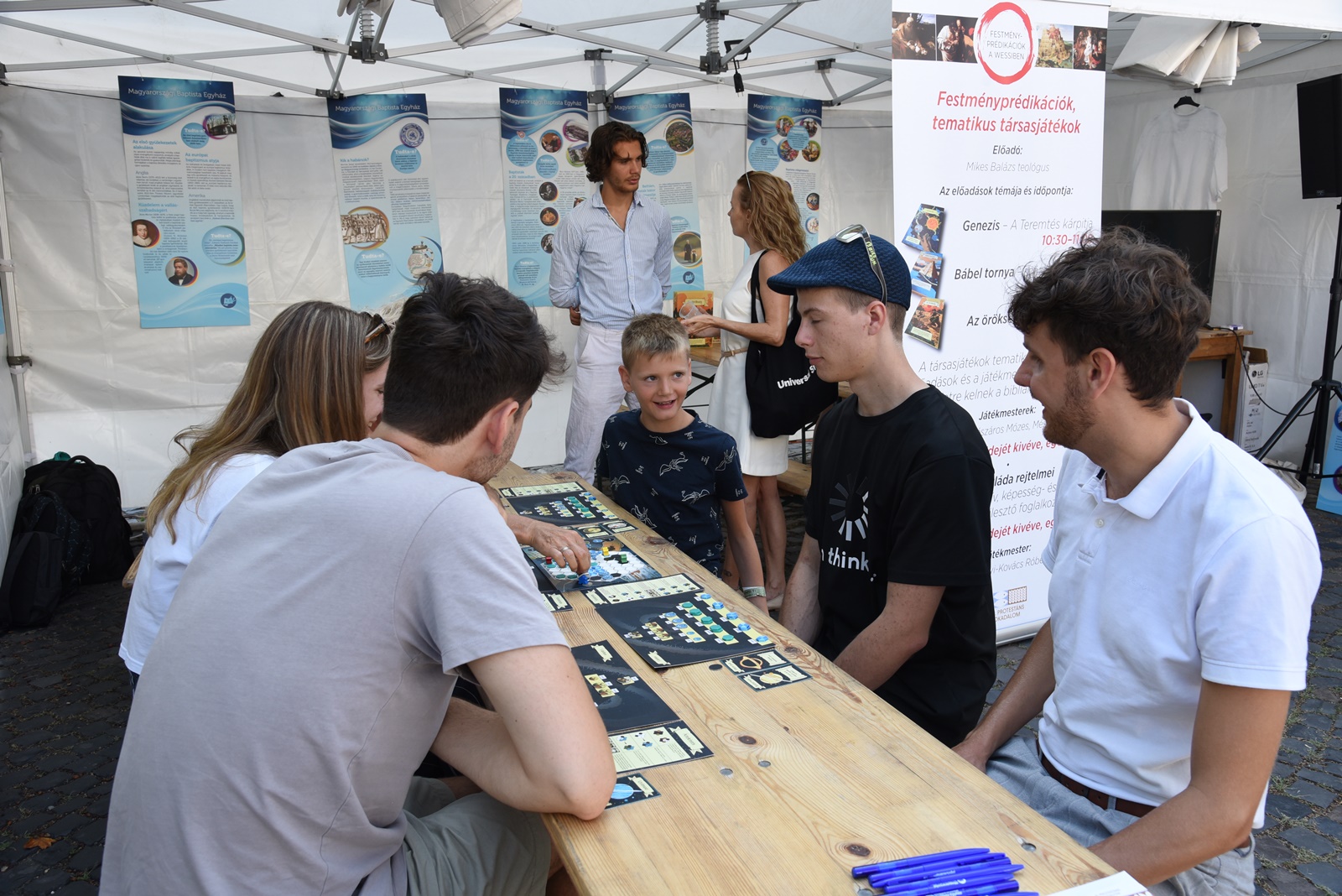 A Kapisztrán téri programsorozat már délelőtt különleges élményt kínált. Mikes Balázs teológus előadásai – A teremtés kárpitja, Bábel tornya, Ézsau és Jákob – segítettek új szemszögből látni a jól ismert bibliai történeteket, a kapcsolódó társasjátékok pedig játékos formában vonták be az érdeklődőket.