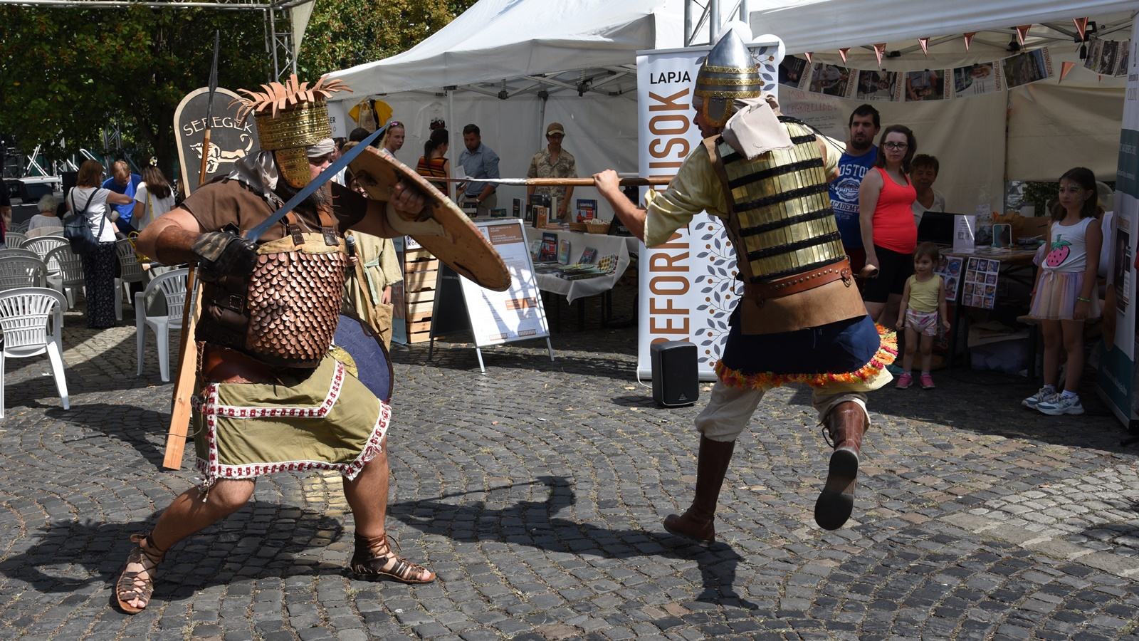 A nap másik különleges eseménye a Seregek Ura Bibliai Múltidéző Kör bemutatója volt. A bibliai korok világát fegyverekkel, páncélokkal és korhű tárgyakkal idézték meg, sőt, harci jeleneteket is láthattunk – a közönség egy időre valóban úgy érezhette, mintha a Szentírás történeteinek idejébe csöppent volna, és még egy „igazi” egyiptomi hercegnő is tiszteletét tette a harctéren.