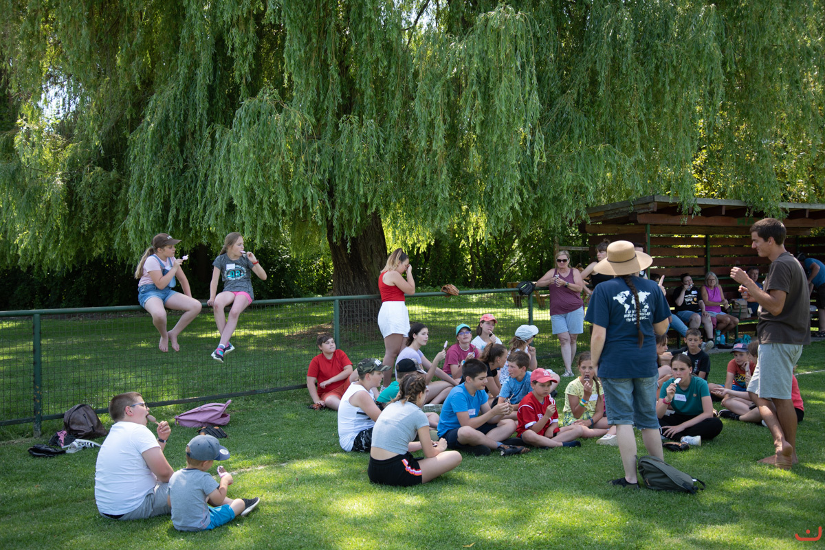 Hat amerikai misszionárius önzetlen felajánlásával, segítségével felmértük a 30 résztvevő nyelvtudását, majd a tábor során kiscsoportokban tanultunk angolul, beszélgettünk a Biblia igazságairól, és játszottunk is persze. A Sakura cukrászda finomságai adtak új erőt tízóraira, melyek tematikus amerikai édességek voltak, ebéd után pedig softball edzés és mérkőzések zajlottak a focipályán.