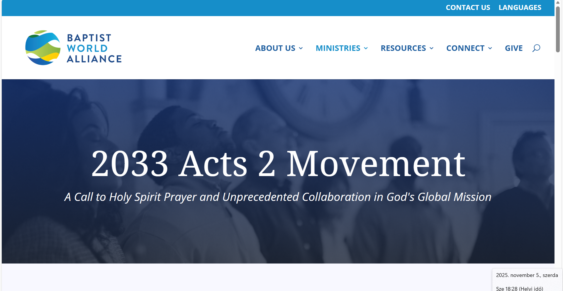 Az újszövetségi egyház születésének 2000. évfordulója előtt a Baptista Világszövetség által szervezett ApCsel 2 mozgalom arra törekszik, hogy mozgósítsa a nagyvilág baptista hívőit egy globális „pünkösd” imádságos keresésére, amely a Szentlélekben való megújulásunkban és az evangéliumi tanúságtételben ölt testet minden nyelven, szerte a világon.