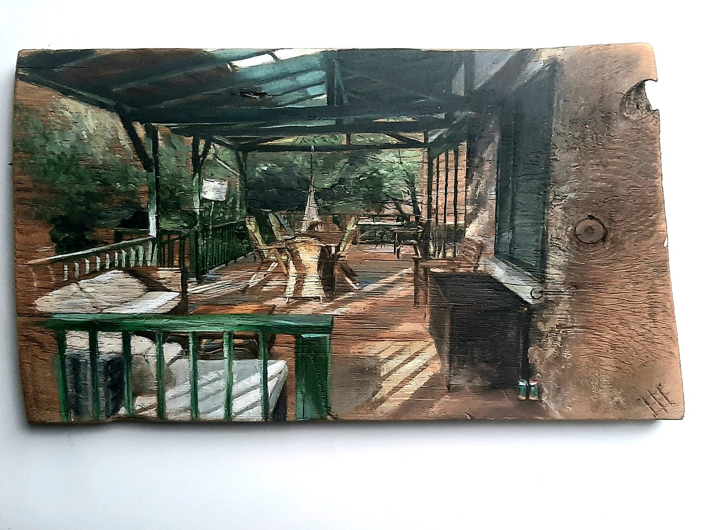 Budaörsön élünk, 2008-ban csatlakoztam a Budaörsi Művészek Egyesületéhez, amellyel nagyon sok kiállításon veszünk együtt részt. Jó itt csapatban kiállításokat rendezni, szervezni és sok önálló kiállításom is volt már. A legelső egy budaörsi könyvtárban, amelynek kapcsán mára eltűnt épületeket festettem meg, rajzoltam le és ezeknek a történetét is felkutattam a munka során. Budaörs nagyon szép hely, a képeket régi házakból gyűjtött deszkákra festettem, ami gyönyörű hangulatot sugároz a műveknek. Szerintem fontos tudni, hogy honnan jövünk, mik a gyökereink, és ha tovább visszük egy ilyen fadarabnak az életét, ezzel adunk valamit magunknak is és másoknak is a gyökereinkkel kapcsolatban. Másrészt vannak könyv illusztrációim is, amelyek közül a legkedvesebb Gerzsenyi Sanyi bácsi A Századik című verseskötete, de illusztráltam már a családban több református lelkész könyvét és csináltam gyerekeknek a Ben Húrhoz rajzokat. Az egyház felkérésére készítettem képgalériát az egyház vezetőiről, amelyet Szigetszentmiklóson lehet megtekinteni.