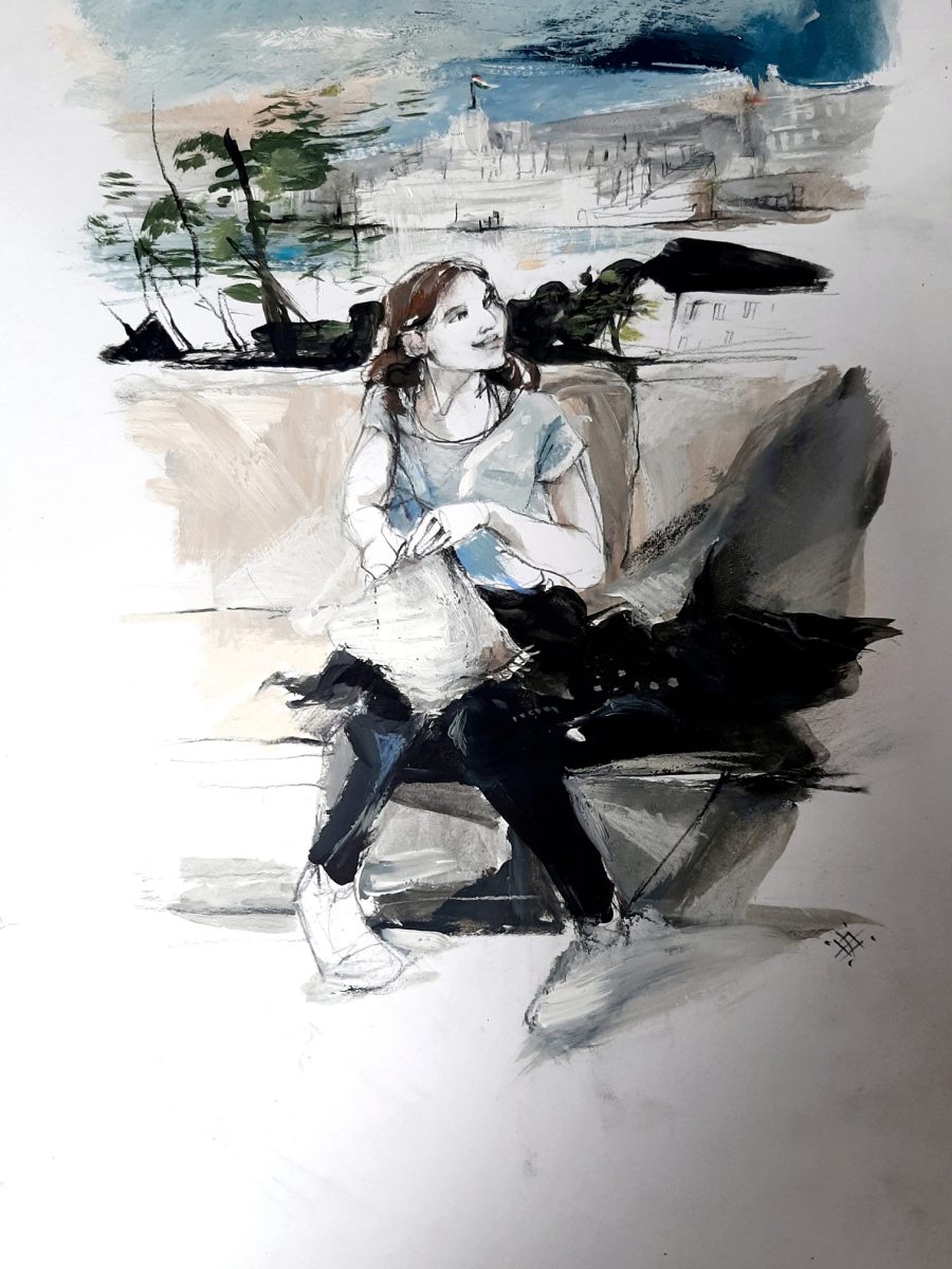 Ezek pillanatképek olyan dolgokról, amelyeket átéltem és lenyomatot hagyott bennem. Mivel nagyon szeretem a változást nem tudok sokáig leragadni egy kép készítésénél. Amit látok, az a pillanat berögzül, és azt papírra kell vetnem. Folyton keresgélek, figyelem az emberek gesztusait, érzéseit és ezeket szeretném továbbadni. Nagyon fontos nálam az, hogy a lényeges részeket festem meg, és nem fejezem be a munkát, hanem mindig nyitva hagyom a képet, ami azt generálja, hogy az ember kétszer is visszanézzen, és tovább gondolja, amit lát a képen.