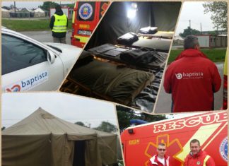 Május 2-án, hétfőn kitelepült a Baptista Szeretetszolgálat HUBA Rescue24 elnevezésű speciális mentőcsapatának egy, személyzettel ellátott mentőautója a körmendi ideiglenes befogadó táborba.