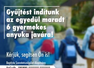 Gyűjtést indít a Baptista Szeretetszolgálat az egyedül maradt hatgyermekes anyuka javára