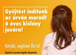 Gyűjtést indít az árván maradt hatéves kislány javára a Baptista Szeretetszolgálat