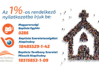 Szeretnénk hálánkat kifejezni, hogy 2018-ban a Magyarországi Baptista Egyházat támogatta adója 1+1 százalékával!