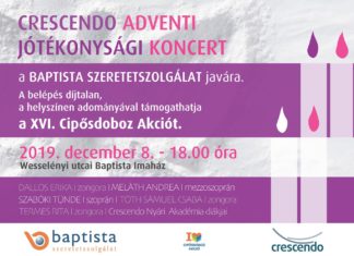 A Crescendo Nyári Akadémia nagy örömmel támogatja a Baptista Szeretetszolgálat XVI. Cipősdoboz-akcióját. A koncertre a belépés díjtalan, a helyszínen adományával ön is támogathatja a nemes ügyet.