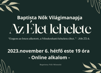 2023. november 6-án, hétfő este 19 órakor online imádságra hívunk benneteket. Csatlakozzatok ti is, és imádkozzunk együtt a világszerte imádkozó baptista nők népes táborához!