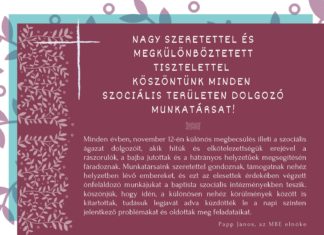 Nagy szeretettel és megkülönböztetett tisztelettel köszöntünk minden szociális területen dolgozó munkatársat!
