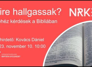 Kire Hallgassak? Nehéz kérdések a Bibliában – Kovács Dániel – 2024.11.10. – Székesfehérvár