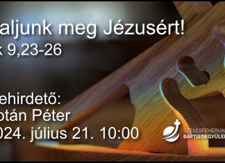 Élő közvetítés dátuma: 2024. júl. 21. Kotán Péter igehirdetése a Lk 9:23-26 igeversek alapján. Székesfehérvári Baptista Gyülekezet