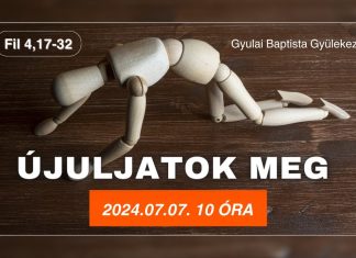 Élő közvetítés dátuma: 2024. júl. 7. Merényi Zoltán lelkipásztor igehirdetése az Ef 4,17-32 igeversek alapján. Gyulai Baptista Gyülekezet