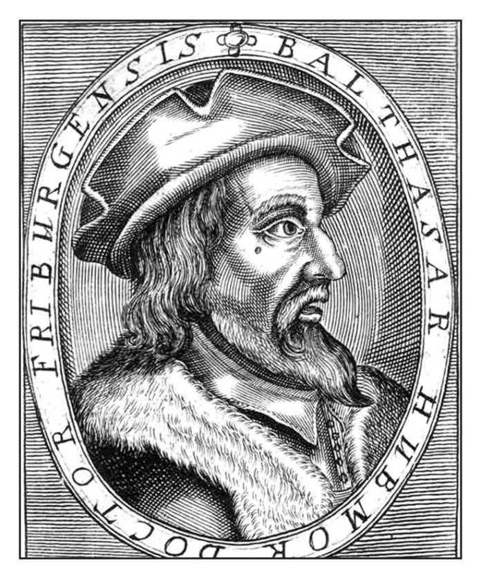 Dr. Hubmayer Baltazár az anabaptisták tudatosan pacifista ágához tartozott. Ő volt a legtermékenyebb író, aki nikolsburgi tartózkodása idején több rövid füzetet, könyvecskét adott ki svájci áttelepült anabaptista nyomdájuk segítségével. Valamennyit az ismert mondással zárta:
