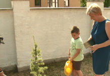 A fát a két édesapa ültette el és locsolta meg, majd imádságban is kifejezték hálájukat Istennek a piciny életekért. A jelenlévőkkel együtt énekben is Istent magasztaltuk.