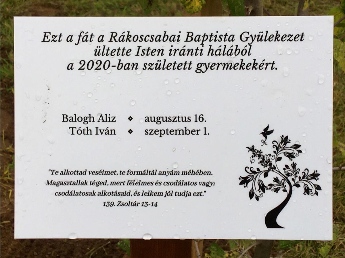 A 127. zsoltárban olvashatjuk ezeket az igéket, és ezt a zsoltárt olvasta fel László Gábor rákoscsabai lelkipásztor, négy gyermek édesapja, a gyülekezet hálaadó napján egy új facsemete mellett állva.