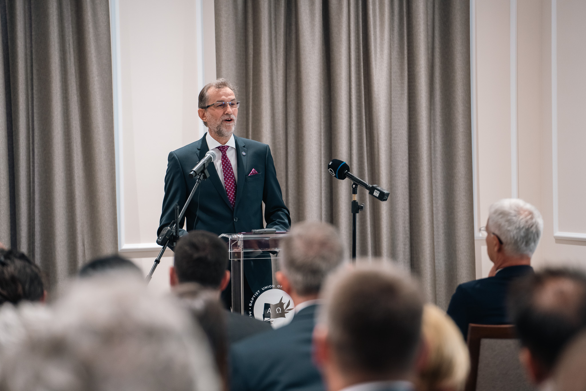 Ma pedig a Baptista Ház átadóünnepségét tartjuk, amely épület a baptista egyház szervezeti és lelki központja lesz. 2018-ban a Magyar Kormánytól kaptuk ezt az épületet, hogy missziói, oktatási és szociális célra hasznosítsuk. Hálásan köszönjük mind az épületet, mind pedig a nagylelkűen adott felújítási, korszerűsítési támogatást is! Köszönjük, Miniszterelnök-helyettes úr!