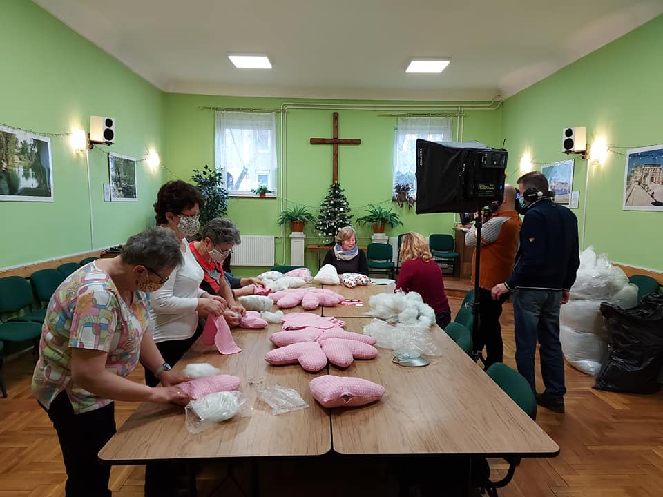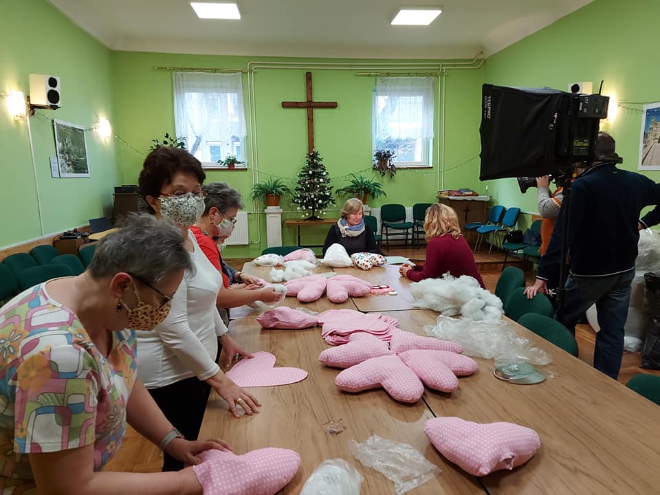 Szívpárnakészítő misszió bemutatása a Kispesti Baptista Gyülekezetben, és az elkészült párnák átadása a Szent István Kórházban. A szívpárnák és az elmondott imák a mellrákkal műtött hölgyek felépülését segítik.