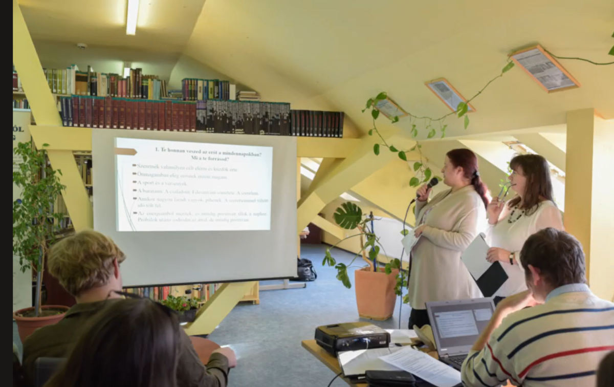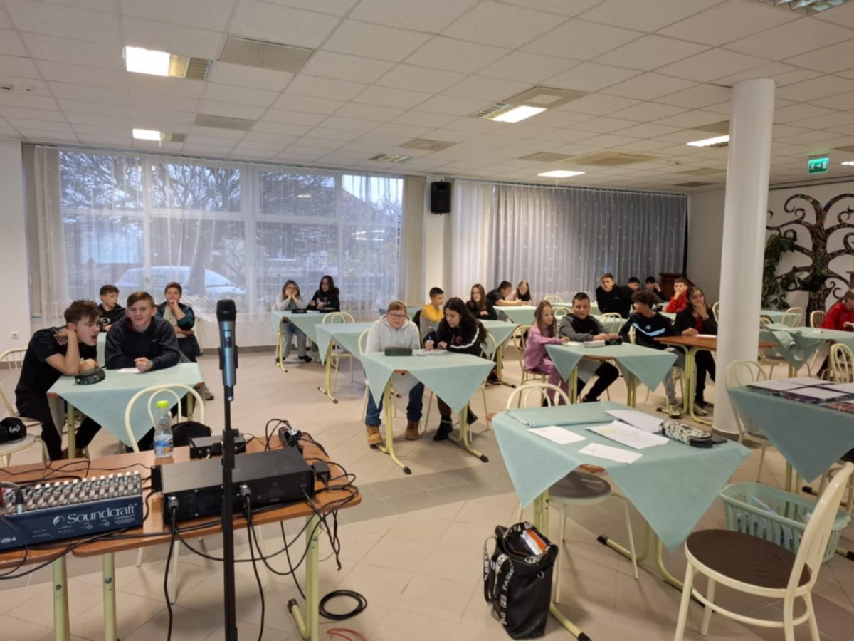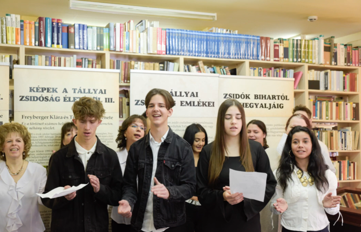 A hét záróeseménye a könyvtárban, majd a tornateremben zajlott. A részt vevő gyerekek interaktív foglalkozáson vehettek részt, melynek során együtt éneklésre, Kahoot játékra és tánctanulásra is sor került. Közben meghallgatták Szuhai Eszter, majd Heller Zsolt, végül dr. Patkó András előadását a zsidók életéről.