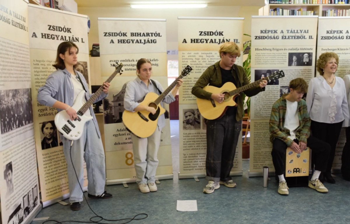 A Huszár Gál Iskola Ifjúsági Zenekara és a Diószegi Zeneklub zsidó hagyományokat ápoló dalokat és táncot adott elő a diákjaink bevonásával.