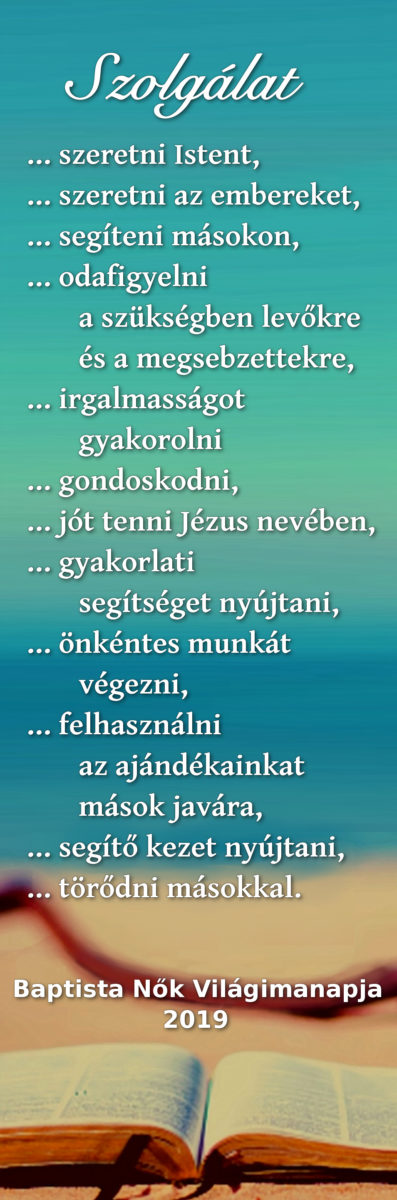 - hogy a baptista nőtestvérek bizonyságot tegyenek Jézus szeretetéről a családban, a barátaiknak, munkatársaiknak, szomszédaiknak, ellenségeiknek, valamint a más kultúrájú és nyelvű embereknek;