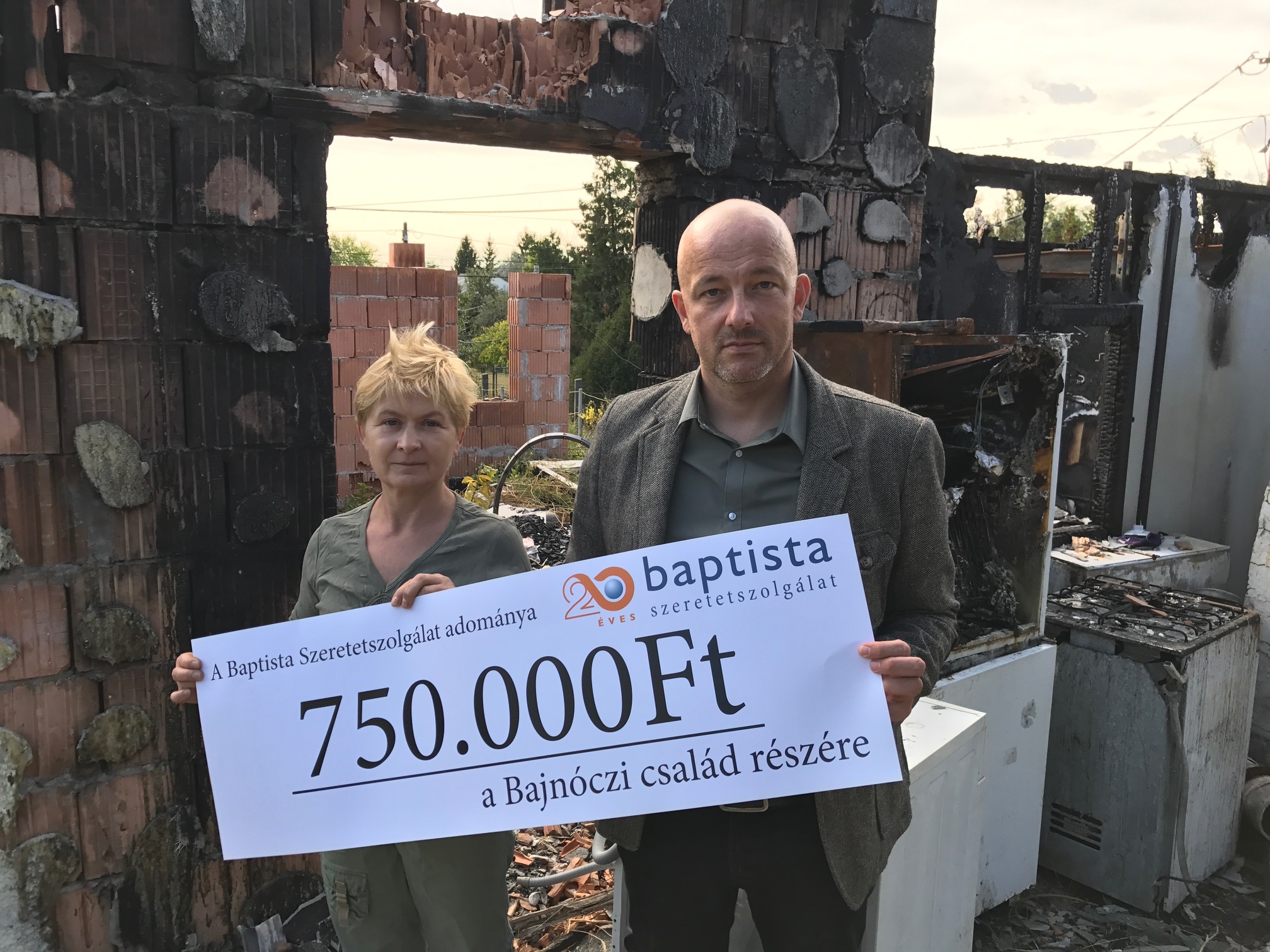 A Baptista Szeretetszolgálat akciót indított, és ennek eredményeként sikerült 750 ezer forintot összegyűjteni. Ebből 150 ezer forint a segélyszervezet gyorssegélye volt, 600 ezer forint az akció meghirdetése után érkezett a számlára, további 50 ezer forintot az őrbottyáni–veresegyházi baptista gyülekezet adományozott. De a környékbeli baptisták és a segélyszervezet segítsége ezzel még korántsem merült ki: a mosógép és a tűzhely mellett ruhaneműk, ágyneműk, törölközők, konyhai felszerelések, könyvek gyűltek össze a felhívás nyomán. A baptisták felajánlották mindezen felül még azt is, hogy ha kell, az építkezésben, kétkezi fizikai munkával segítenek.