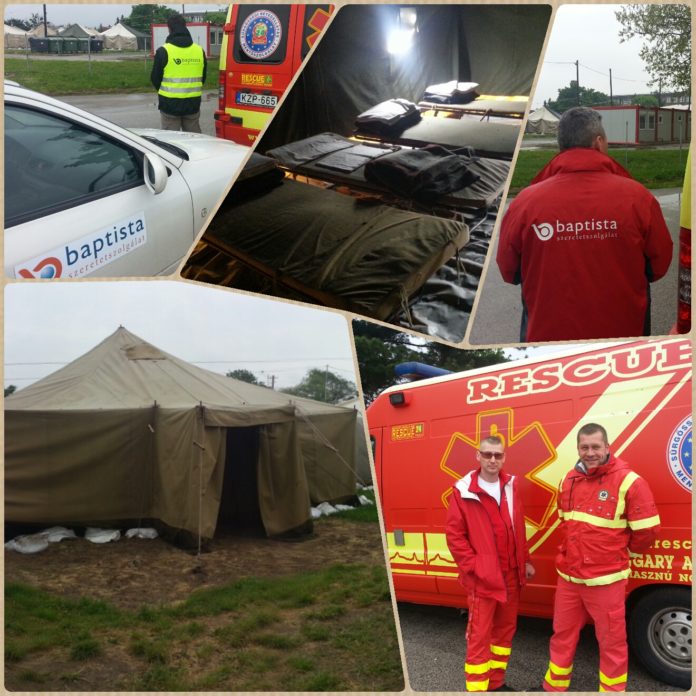Május 2-án, hétfőn kitelepült a Baptista Szeretetszolgálat HUBA Rescue24 elnevezésű speciális mentőcsapatának egy, személyzettel ellátott mentőautója a körmendi ideiglenes befogadó táborba.