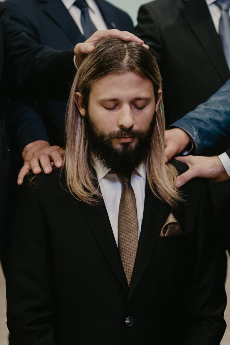 A nagyon gazdag és bátorító üzenet után Barnabást és az Élő Remény Baptista Gyülekezet tagjait kérdezte, hogy vállalják-e a lelkipásztorrá avatással és beiktatással járó kötelezettségeket, feladatokat. Mivel a gyülekezet teljes egyetértésben, egybehangzóan vállalta ezeket a kötelezettségeket, sor kerülhetett a kézrátételes imádságra: Varga László Ottó főtitkár, dr. Mészáros Kálmán, a Baptista Teológiai Akadémia rektora, Bacsó Benjámin, az Élő Remény Baptista Gyülekezetek lelkipásztora, Baranyi László Zsolt, Barnabás édesapja, baptista lelkipásztor és Boros Dávid, a Budapesti Baptista Missziókerület elnöke együtt imádkoztak Barnabásért és lelkipásztori szolgálatáért.